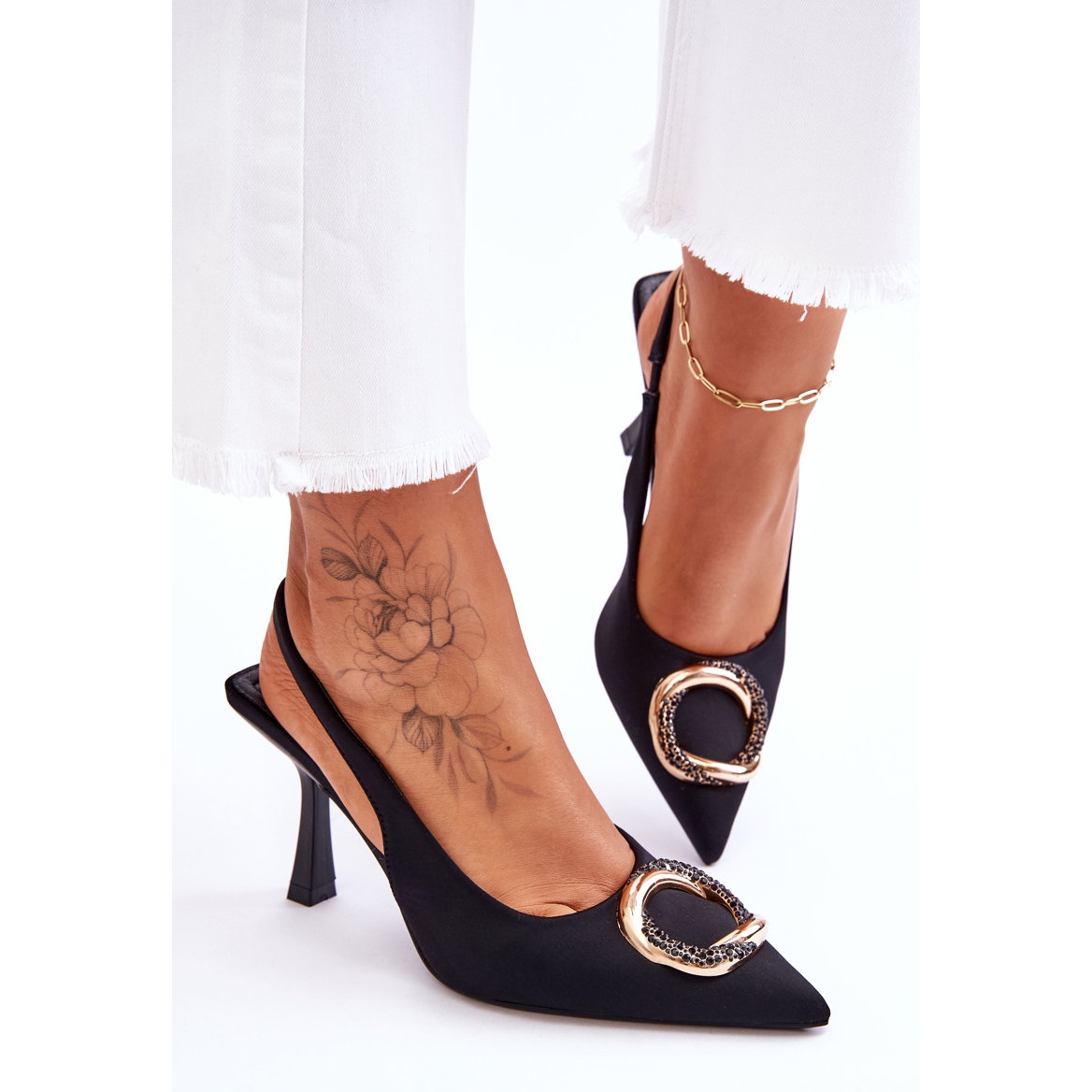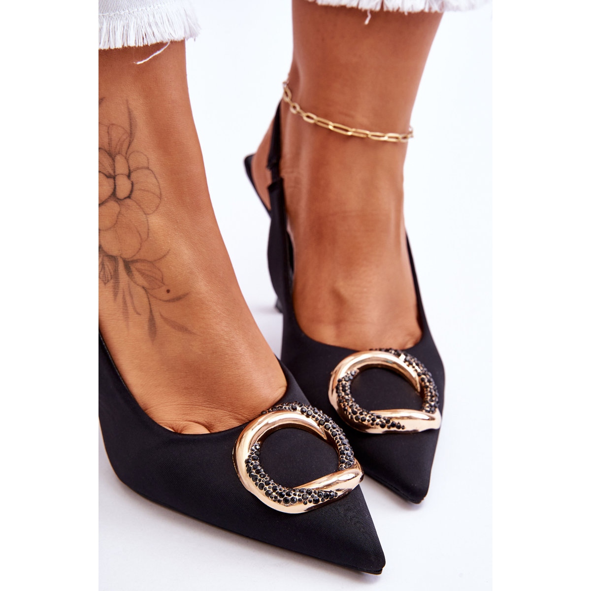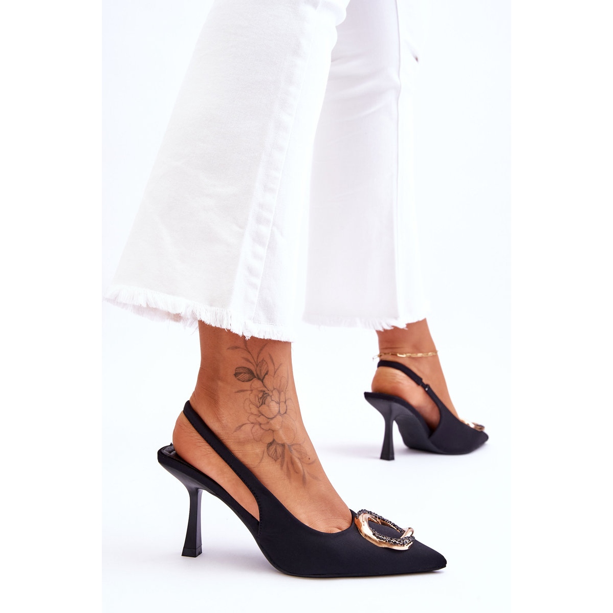 Nous vous invitons à découvrir d'étonnants talons hauts avec décoration et zircons - des modèles qui raviront à coup sûr tous les amoureux des dernières tendances de la mode ! Les talons hauts Alexia noirs se distinguent par leur design élégant, réalisé dans une matière textile de haute qualité, garantissant confort et style en toute occasion.