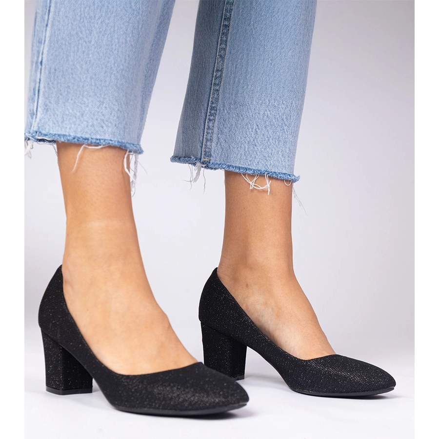 Détails: Pompes aux femmes noires avec une finition matérielle le noir