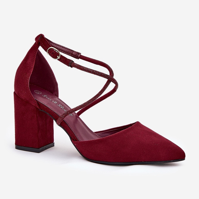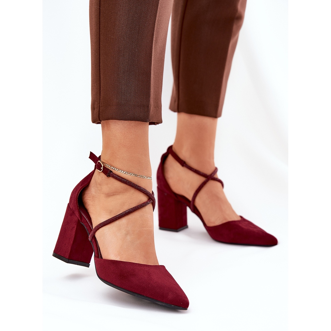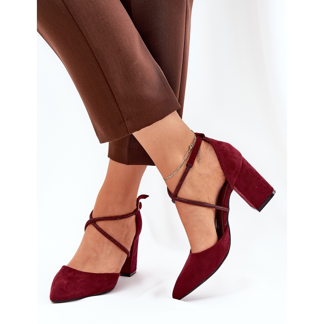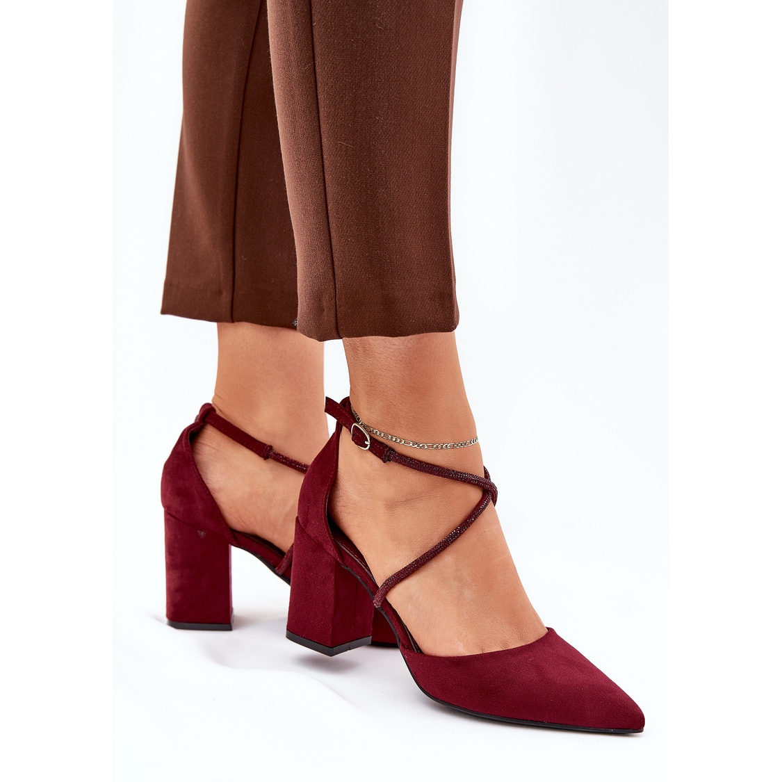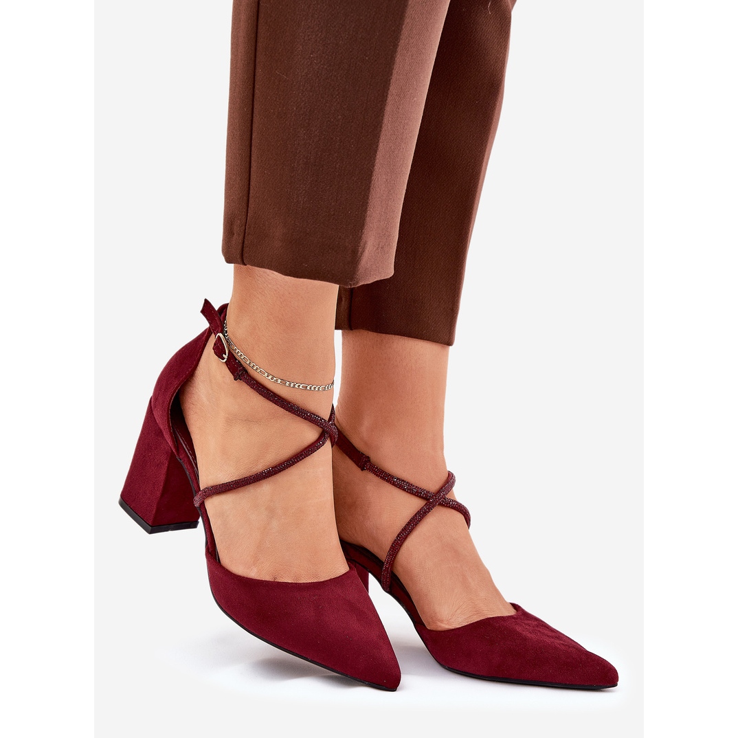 Détails: Pompes avec des orteils pointus et des sangles bordeaux décorées rouge