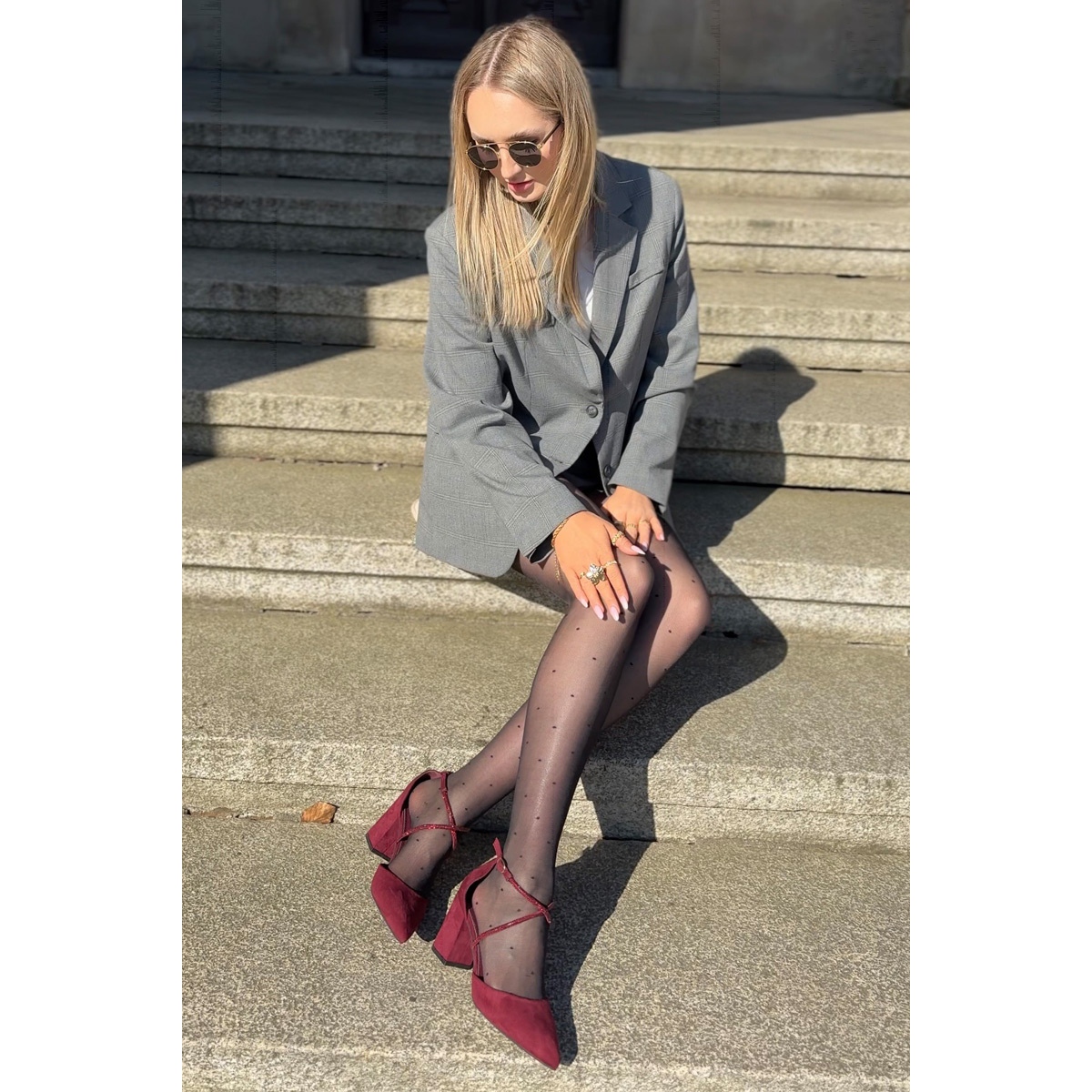 Découvrez l'élégance et le style en pompes avec des orteils pointus et des rayures décorées dans une teinte bordeaux! Ces pompes féminines uniques, en daim eco de haute qualité, sont un excellent choix pour tout événement spécial.