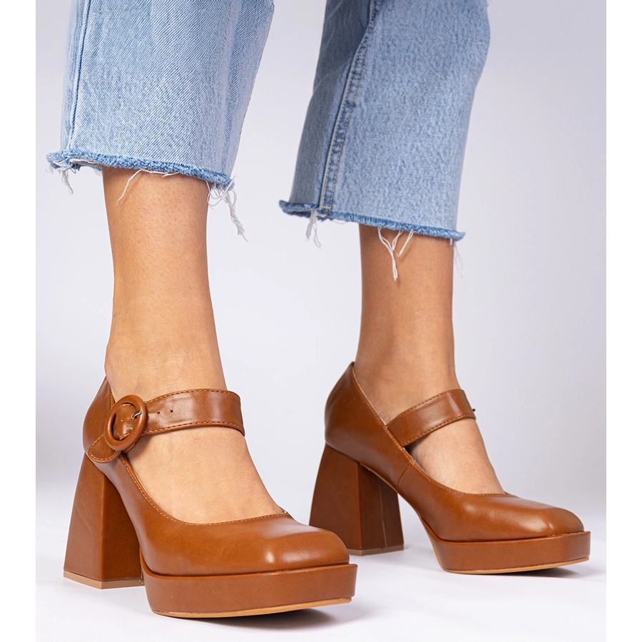 Inna marka Pompes brunes avec un nez carré et une boucle