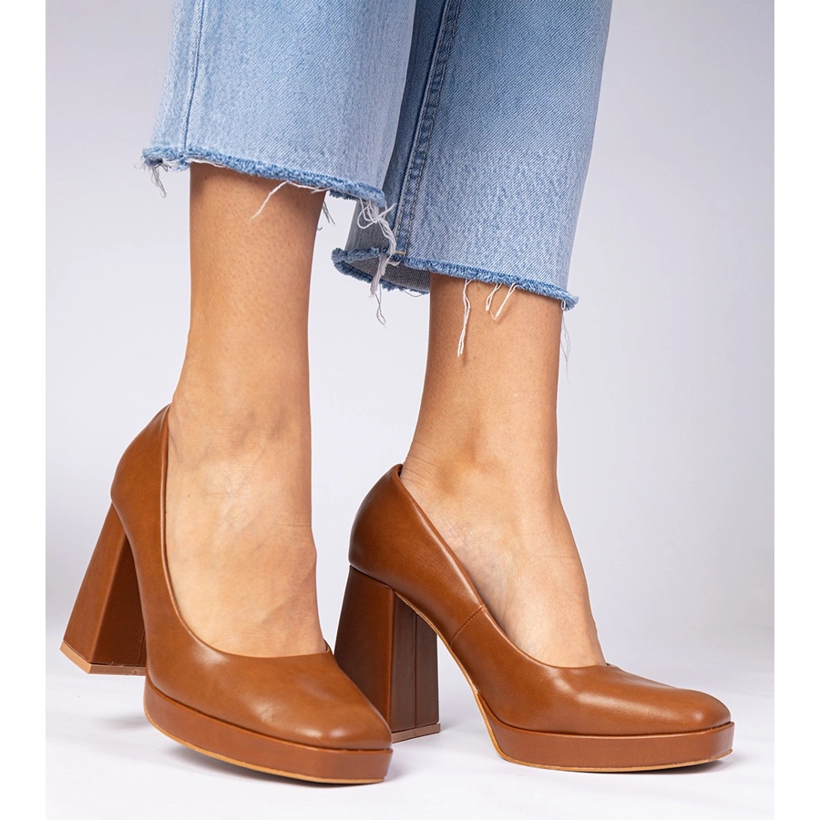 Choisissez des pompes brunes sur un article massif pour ajouter un caractère unique et une élégance à vos tenues. C'est un excellent choix pour chaque femme moderne!
