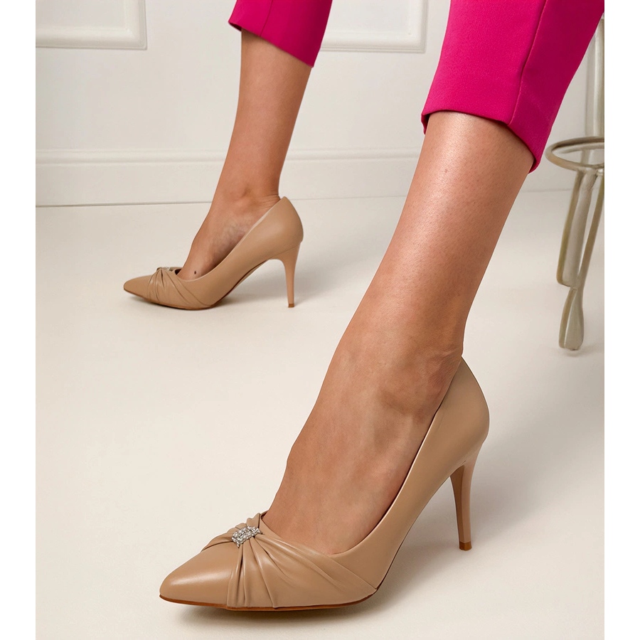 Inna marka Pompes classiques beige sur une épingle avec zircons