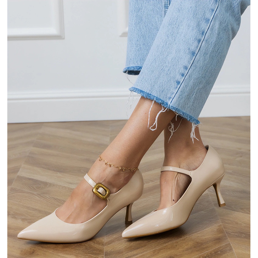 En choisissant des pompes classiques beige avec une boucle décorative, vous investissez dans un ajout élégant et polyvalent à votre garde-robe, qui mettra l'accent sur votre style unique et assurera le confort à chaque étape. Prenez soin de vos pieds et démarquez-vous grâce à des solutions à la mode et pratiques qui offrent ces belles pompes d'une autre marque.