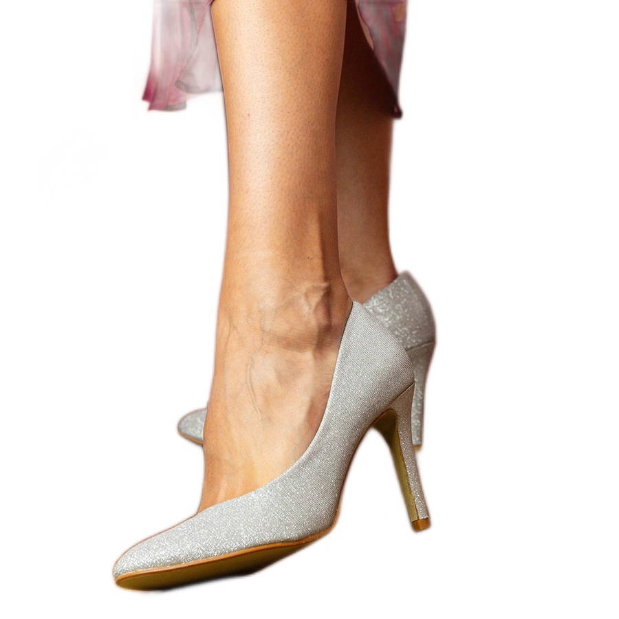 La finition des paillettes en argent rend les pompes idéales pour de nombreuses occasions spéciales - des mariages élégants, à travers des événements occasionnels, aux soirées romantiques. Un orteil classique, un orteil d'amande et une attache de glissement confortable ne fournissent pas seulement une apparence esthétique, mais aussi le confort de l'usure.