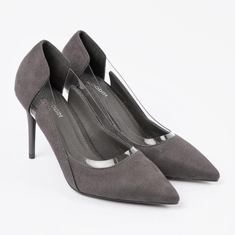 Détails: Goodin Pompes en daim gris avec inserts transparents