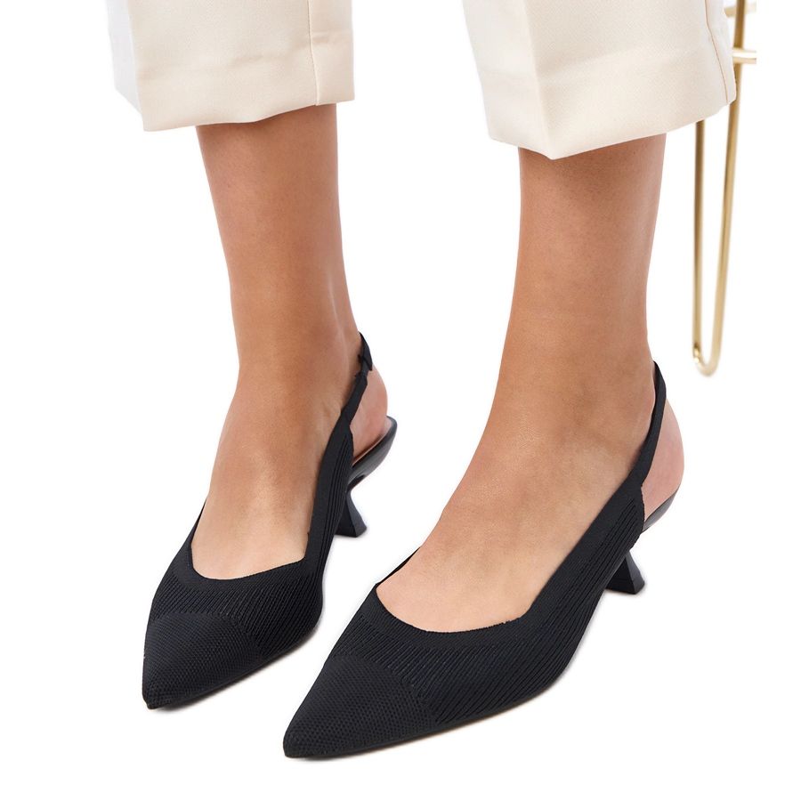 Détails: Pompes en matière noire avec cassie à talon bas