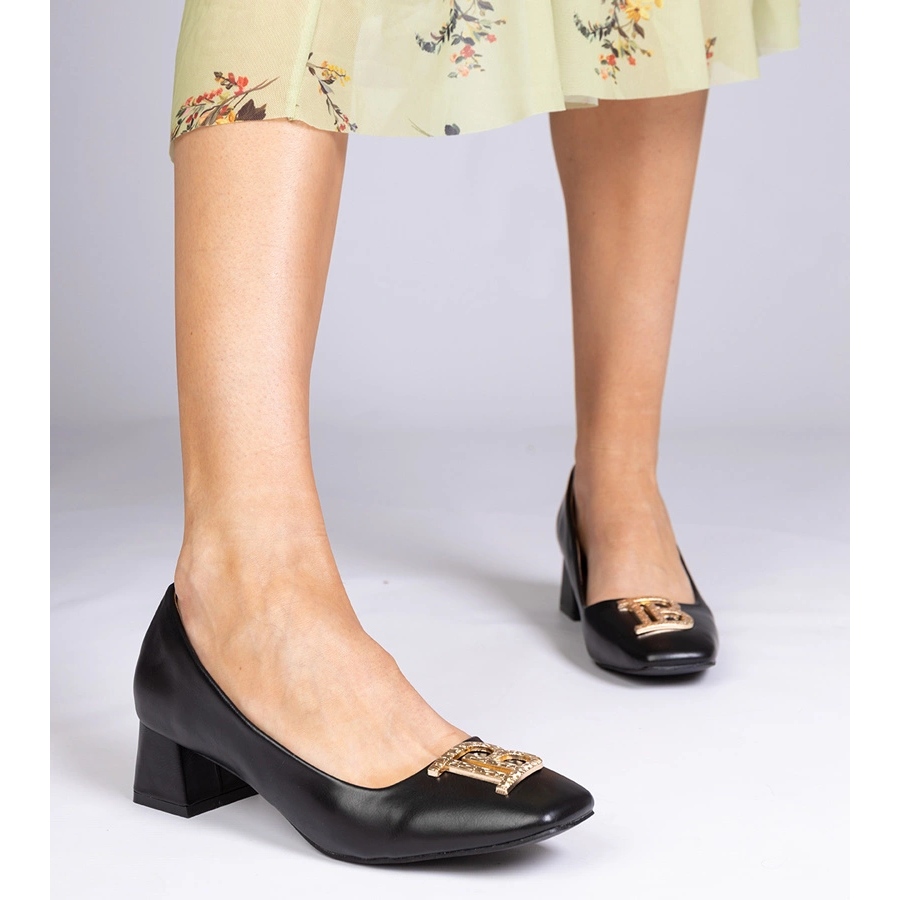 Inna marka Pompes noires à thèses avec une décoration dorée le noir