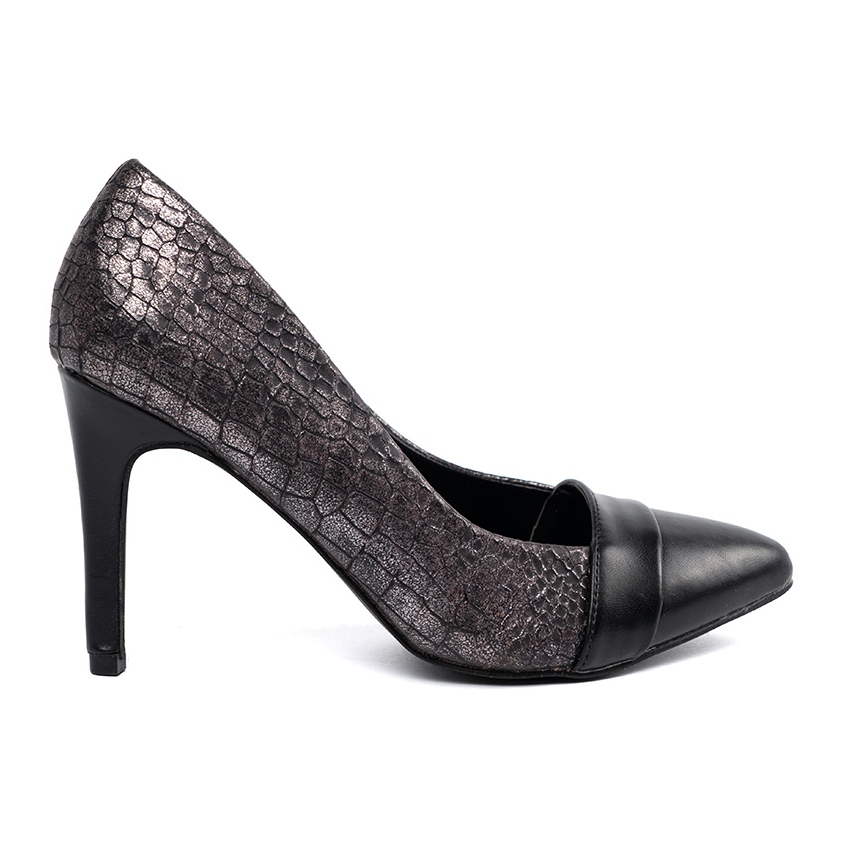 Découvrez la perfection du style et de l'élégance sophistiquée grâce aux pompes Goodin avec un motif de serpent! Ces chaussures de femmes noires uniques sont un excellent choix pour chaque femme qui veut combiner un look à la mode avec le confort. Avec un talon de haut de 9,5 cm de haut, les pompes non seulement allongent magnifiquement la silhouette, mais assurent également la stabilité grâce à la Père raidie et construite.