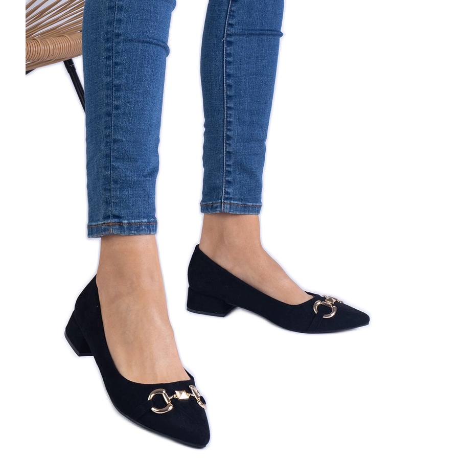 Détails: Pompes noires d'Ekozamsz avec une décoration dorée