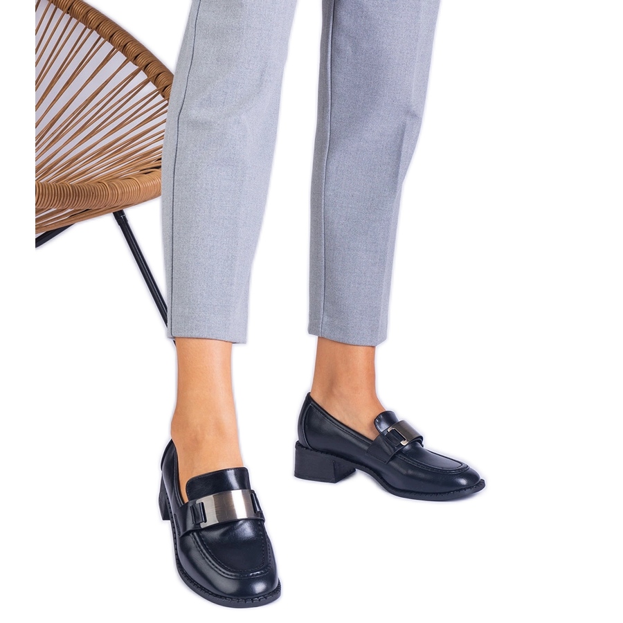 Découvrez l'élégance à chaque étape avec nos pompes noires sur un poteau bas avec une décoration métallique. Ces chaussures uniques sont le choix parfait pour chaque femme qui veut combiner le style et le confort. Fabriqués en cuir biologique de haute qualité, ils ravissent non seulement avec une apparence attrayante, mais aussi la durabilité, ce qui en fait un compagnon fiable tous les jours.