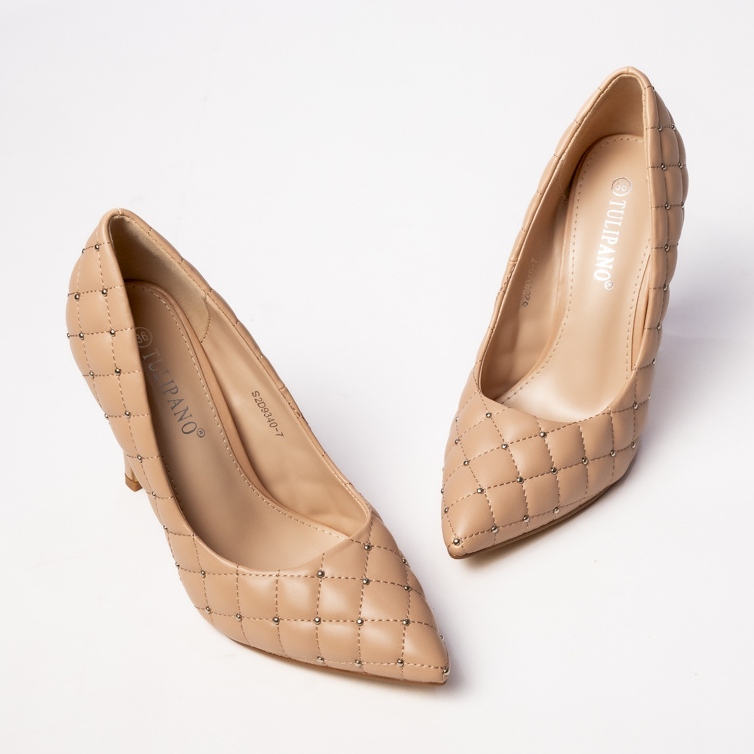 Découvrez le style unique et l'élégance avec les pompes féminines de Lumor Nude pour femmes! Ces chaussures inhabituelles se distinguent par un motif matelassé et des décorations de métaux subtiles qui leur donnent un caractère unique. Leur coupe élégante et une épingle mince en font un choix parfait pour des occasions spéciales, des réunions d'affaires ou des sorties en soirée.