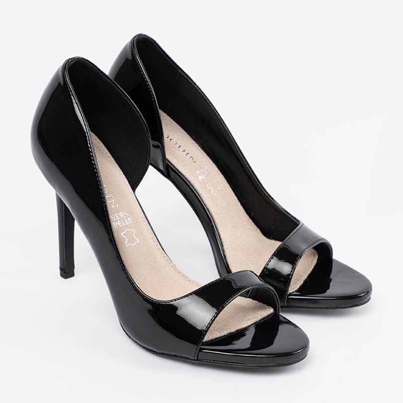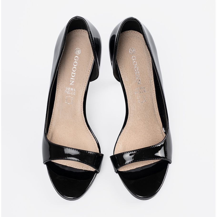 Nous présentons des pompes élégantes avec des doigts nus du fabricant réputé Goodin, qui sont le choix parfait pour les sorties quotidiennes et pour les événements du soir. Ces chaussures vernies noires sont une combinaison de classiques et de modernité, qui attireront certainement l'attention.