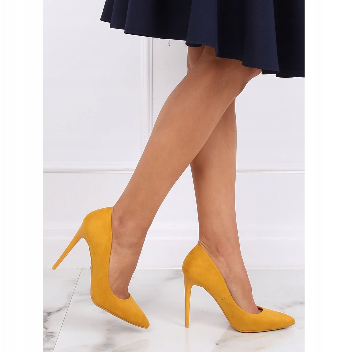 Découvrez une élégance unique avec les escarpins à talons hauts NF-51P Jaune couleur miel ! Ces escarpins en daim sont le choix parfait pour les femmes qui souhaitent ajouter une touche de glamour à leur style. Des bouts galbés et effilés combinés à un talon fin de 11,5 cm allongent les jambes de manière optimale et leur confèrent un charme unique.