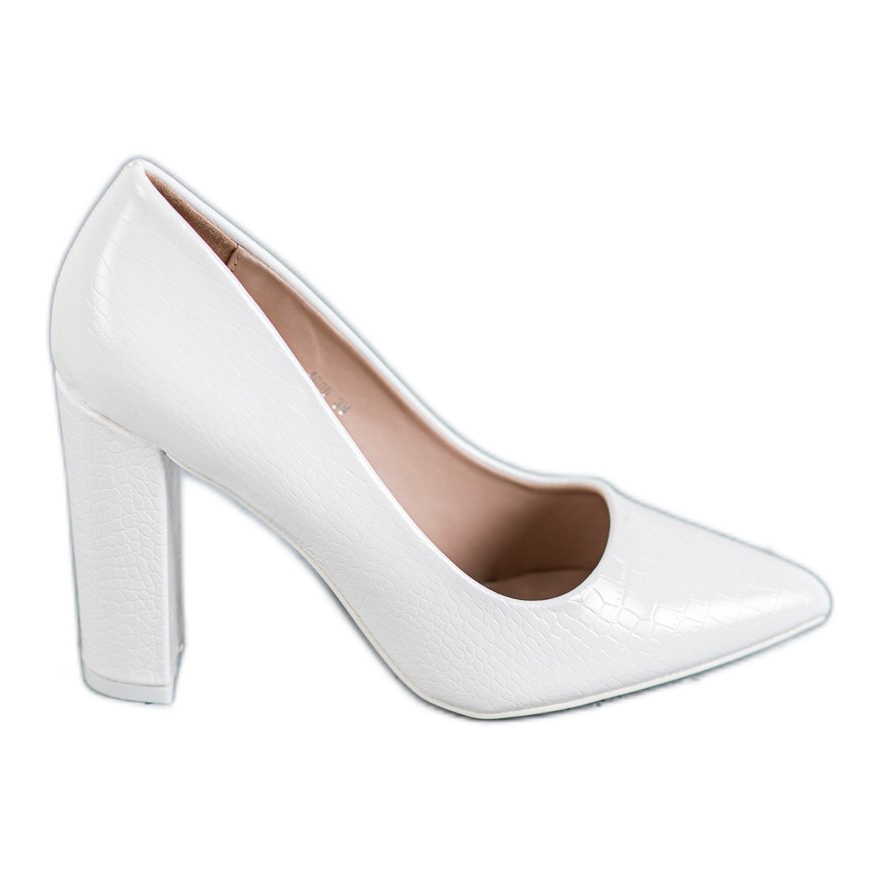 Nous vous présentons les escarpins blancs à talons hauts de la marque Diamantique, qui allient une coupe classique à un style contemporain. Ces élégantes chaussures pour femmes sont fabriquées dans un matériau semblable à du cuir synthétique de haute qualité, qui imite la texture délicate de la peau de serpent, ajoutant un caractère unique à l'ensemble.