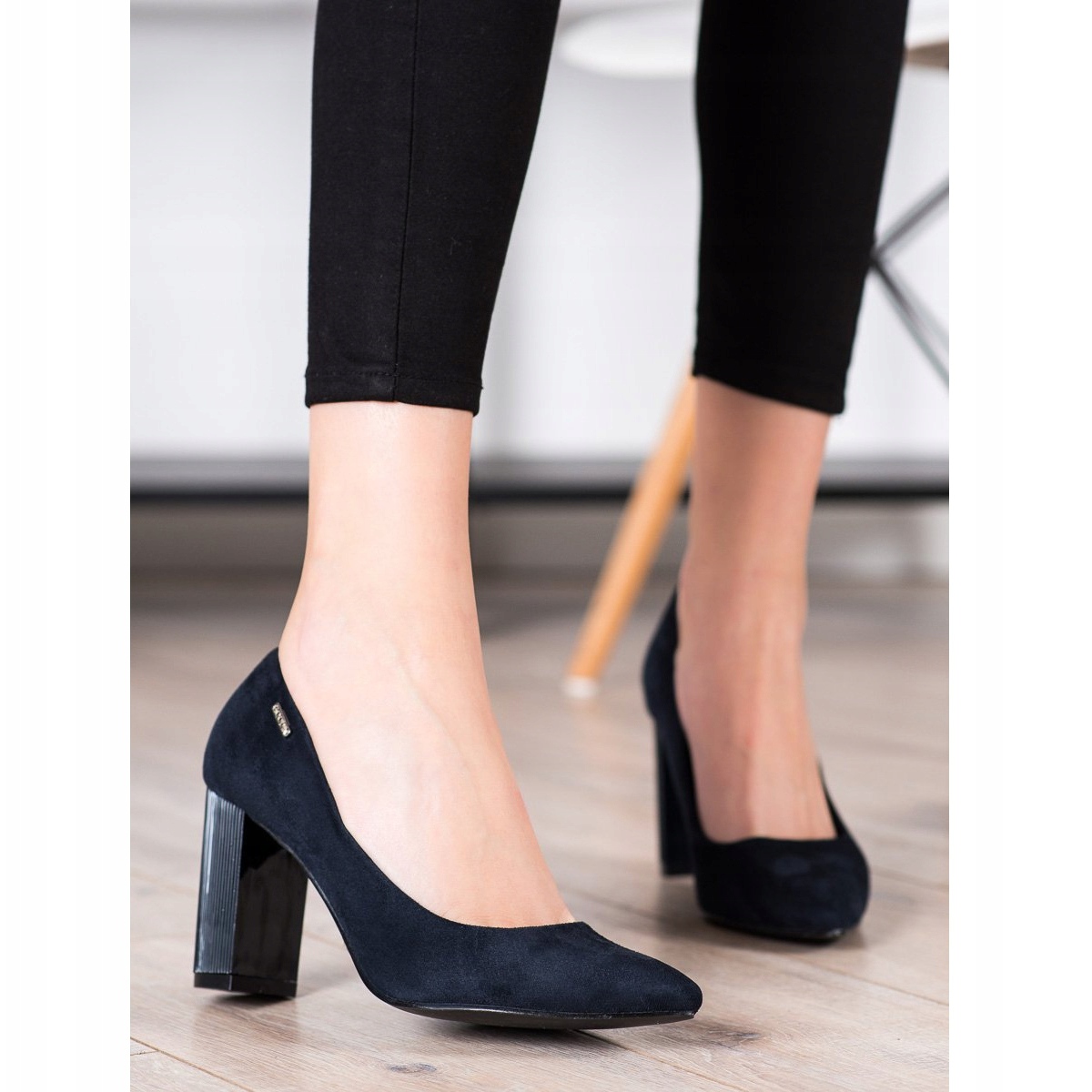 Les escarpins ont un talon intégré renforcé et un bout rond confortable, qui assurent stabilité et confort de port tout au long de la journée. Le talon bloc de 8,5 cm de haut ajoute non seulement du chic, mais rend également la marche extrêmement confortable.