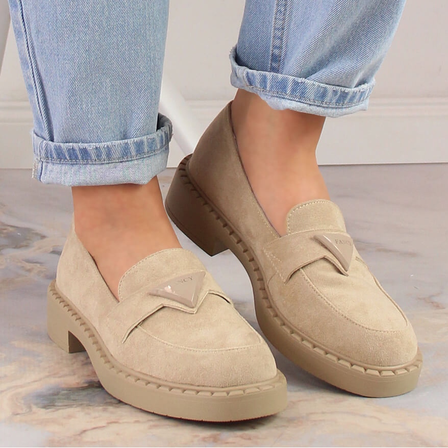 Détails: Potocki SZ12003 mocassins en daim à talons et plateforme beige