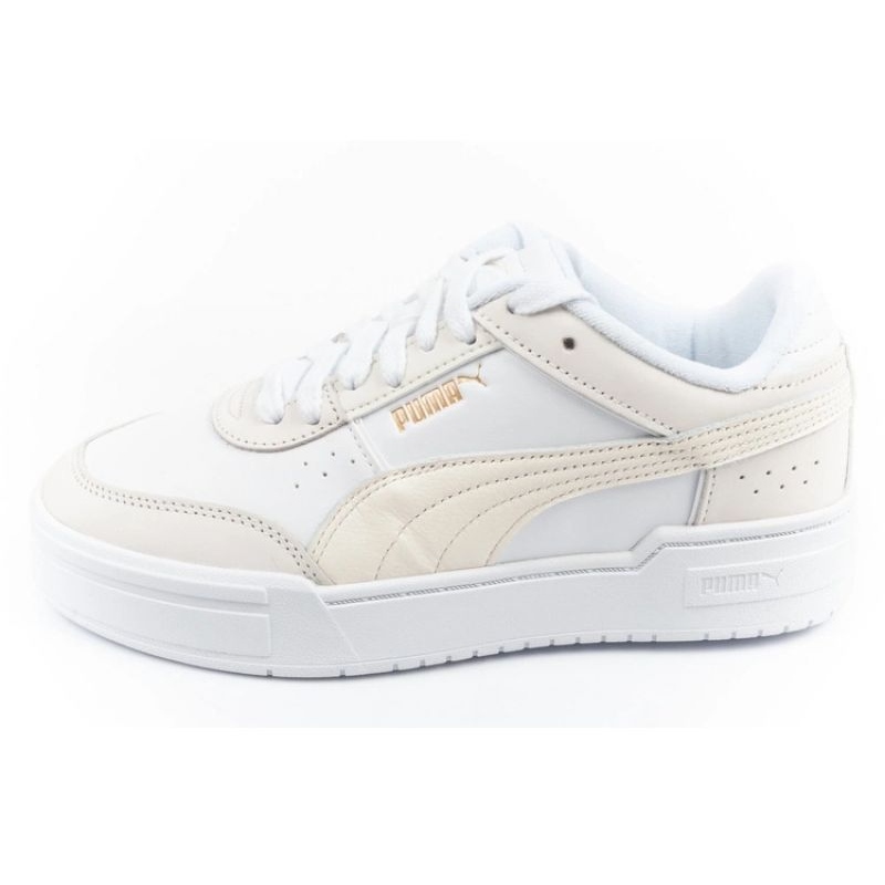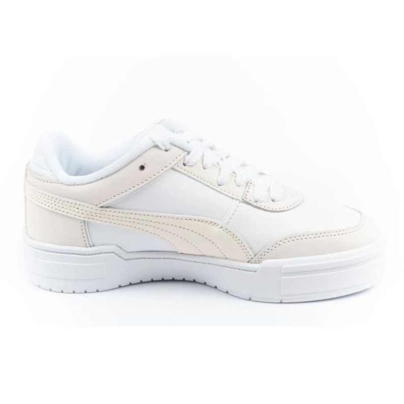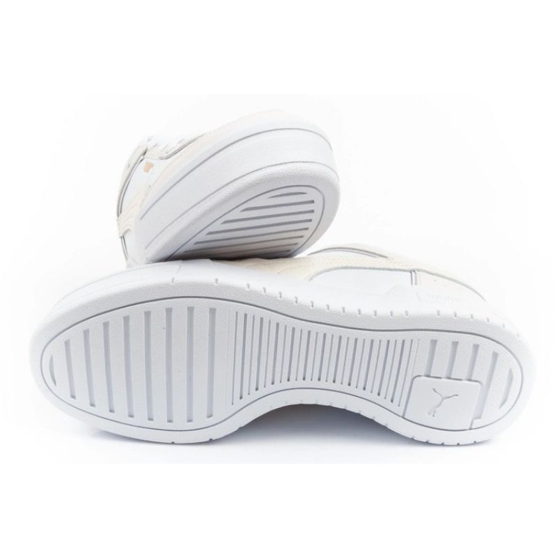 Les chaussures sont disponibles dans une couleur blanche classique avec des accents supplémentaires en beige léger, ce qui les fait correspondre à de nombreux styles - à la fois sportifs et décontractés. Le design lacé vous permet de vous adapter facilement au pied, et le logo Puma caractéristique leur donne un charme unique.