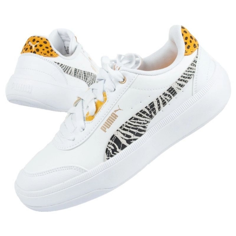 Chaussures pour femmes modernes, confortables et élégantes Puma Tori Safari est une proposition idéale au quotidien. Des baskets classiques et faibles avec une couleur blanche universelle avec un motif animal subtil qui ajoute le caractère de toute stylisation. Le modèle combine l'esthétique urbaine et le confort grâce à la technologie SoftFoam.