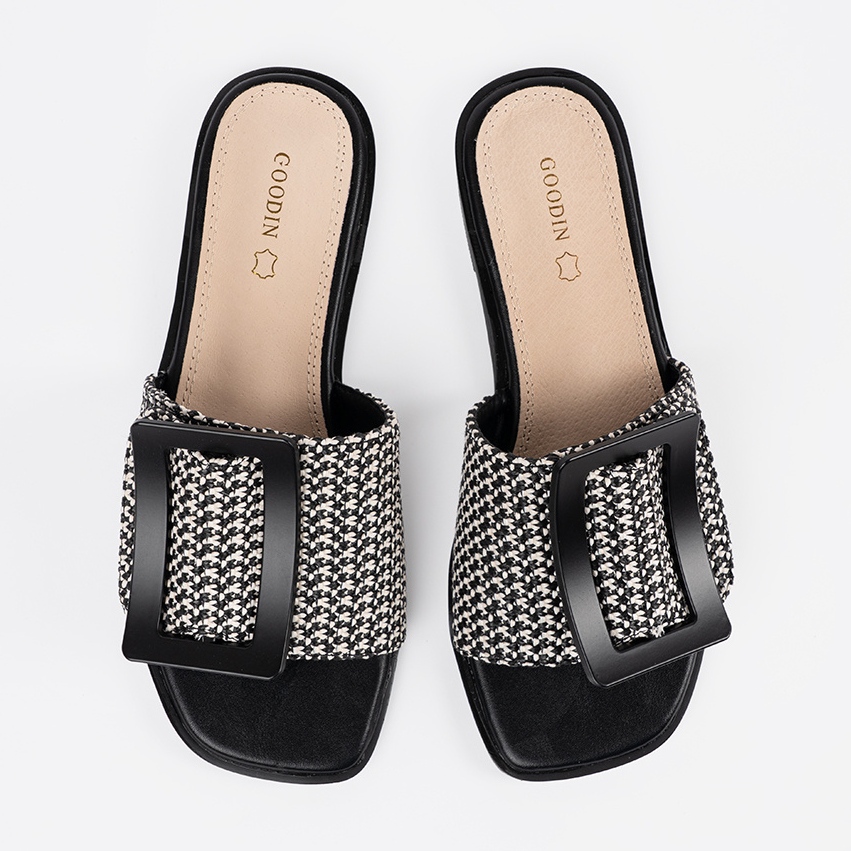 Nous présentons des flip-flops sur une semelle plate du fabricant de renom Goodin, qui sont la combinaison parfaite de confort et de design élégant. Ce modèle, conservé dans les couleurs en noir et blanc, s'intègre parfaitement aux dernières tendances de la mode décontractée.