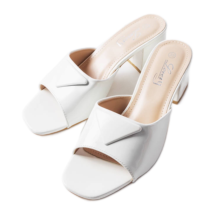 Découvrez les mules à talons hauts vernies blanches Branch - un incontournable pour toute femme à la mode qui recherche l'élégance et le confort pour les journées d'été. Ces tongs élégantes allient design moderne et fonctionnalité. Fabriqués en cuir écologique, recouverts d'un vernis accrocheur, ils attirent l'attention et ajoutent de la fraîcheur à n'importe quel style.