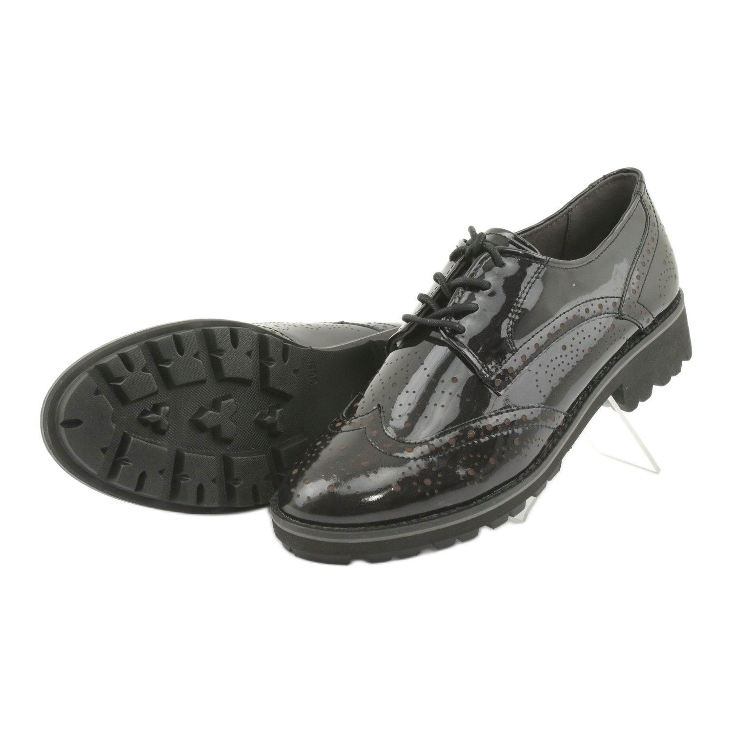 La finition laquée noire avec des particules subtiles et lumineuses leur confère un caractère unique, ce qui les rend parfaits pour différents styles, du plus décontracté au plus élégant. Un avantage supplémentaire est la semelle intérieure en cuir souple, qui garantit une sensation de confort même en cas d'utilisation à long terme.