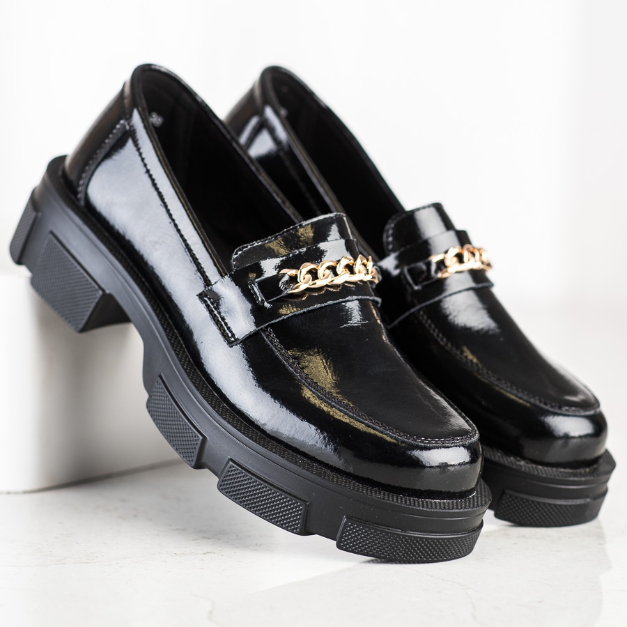 Détails: Filippo Richelieus En Cuir Avec Une Chaîne le noir