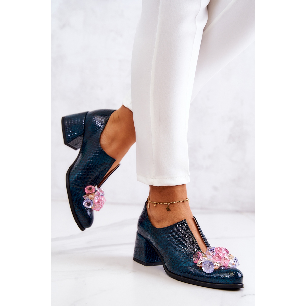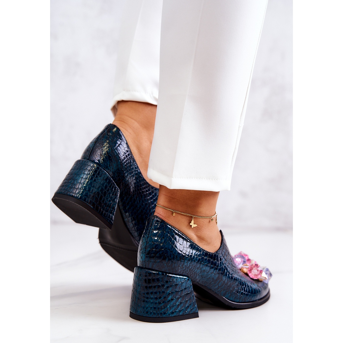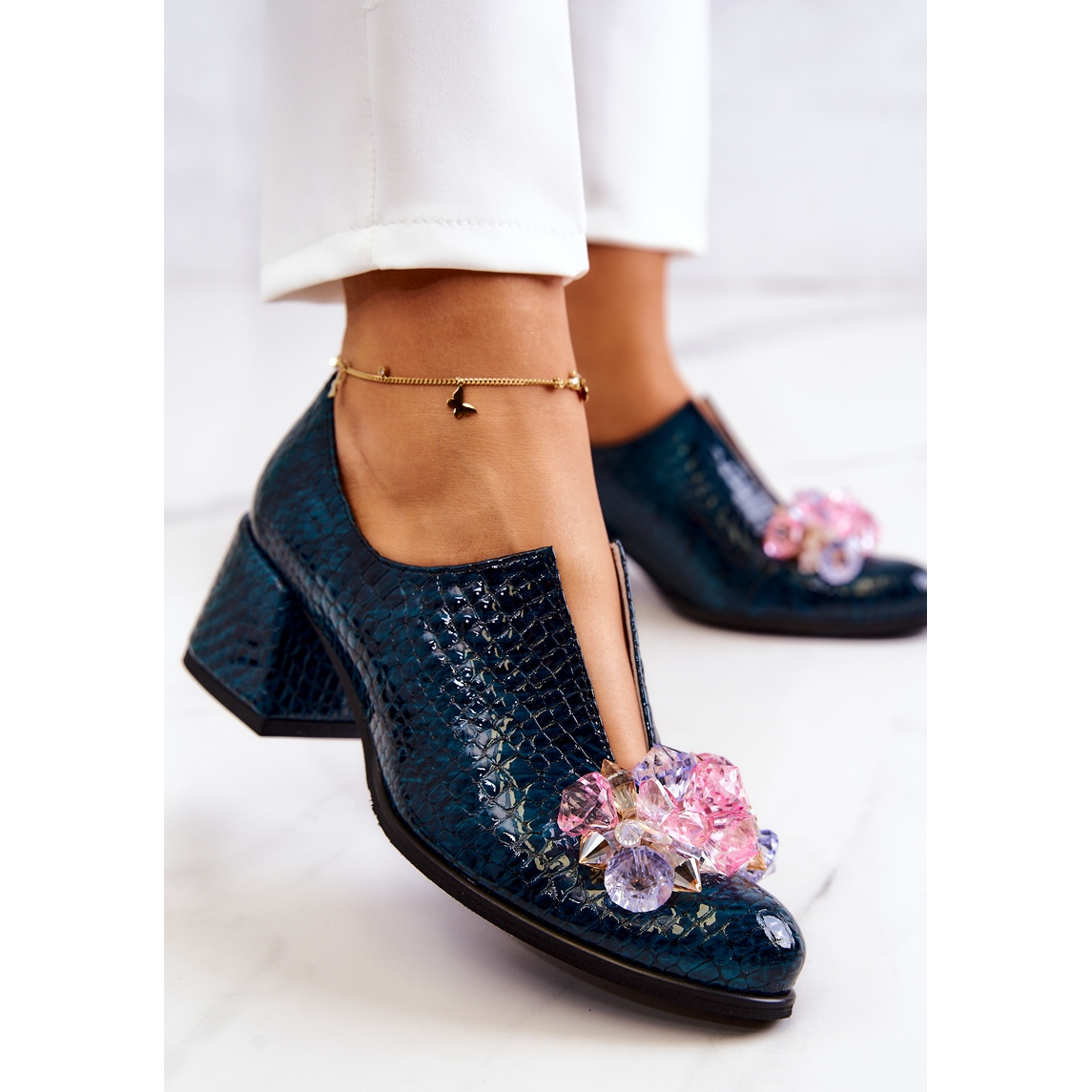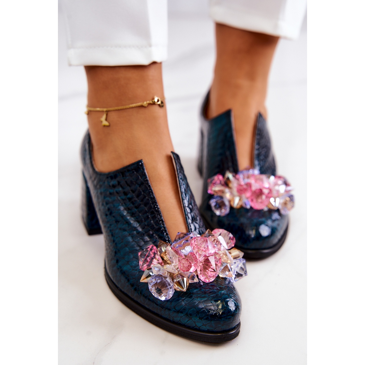 Nous proposons des chaussures PA2 élégantes, qui allient parfaitement design tendance et confort. Ce modèle se distingue par un motif original imitant la peau de crocodile dans une belle teinte de vert profond (Dk.Green). Ces chaussures, réalisées en cuir naturel de haute qualité, attirent l'attention par leur subtil éclat et leur décoration en zircon sur le devant, qui leur apporte chic et élégance.