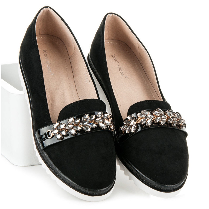 Nous vous présentons les chaussures en daim Ideal Shoes en noir, qui sont le choix parfait pour les femmes modernes qui apprécient le style et le confort. Ces chaussures élégantes ornées de cristaux allient parfaitement un caractère décontracté à une finition tendance. Grâce à leur conception à enfiler, les chaussures sont extrêmement confortables à enfiler, ce qui en fait le compagnon idéal pour les journées de printemps et d'été.