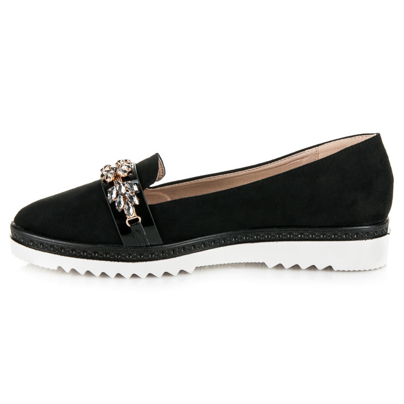 Ces chaussures en daim d'Ideal Shoes s'inscrivent dans les dernières tendances de la mode et leur couleur noire universelle les rend parfaitement adaptées aux styles élégants et décontractés. Quelle que soit l'occasion, ils constitueront un choix fiable, vous permettant de vous démarquer de la foule. Parfaites pour les fêtes, mais aussi pour une promenade quotidienne, des détails uniques comme les strass les rendent originales et chics.