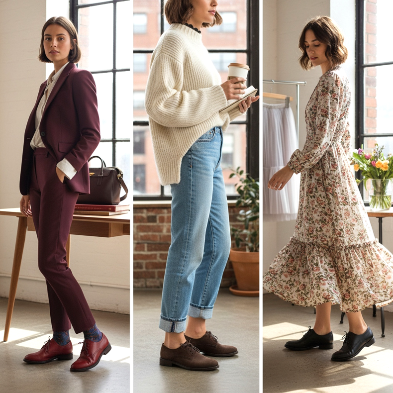 Les chaussures Oxford peuvent mettre plusieurs jours à s'adapter, surtout si elles sont en cuir naturel. Commencez par de courtes promenades et évitez une utilisation intensive le premier jour. Les chaussettes Oxford pour femme sont une question de style : invisibles ou subtiles pour un costume, aux couleurs vives ou à motifs pour des tenues décontractées - les deux options sont à la mode en 2026.