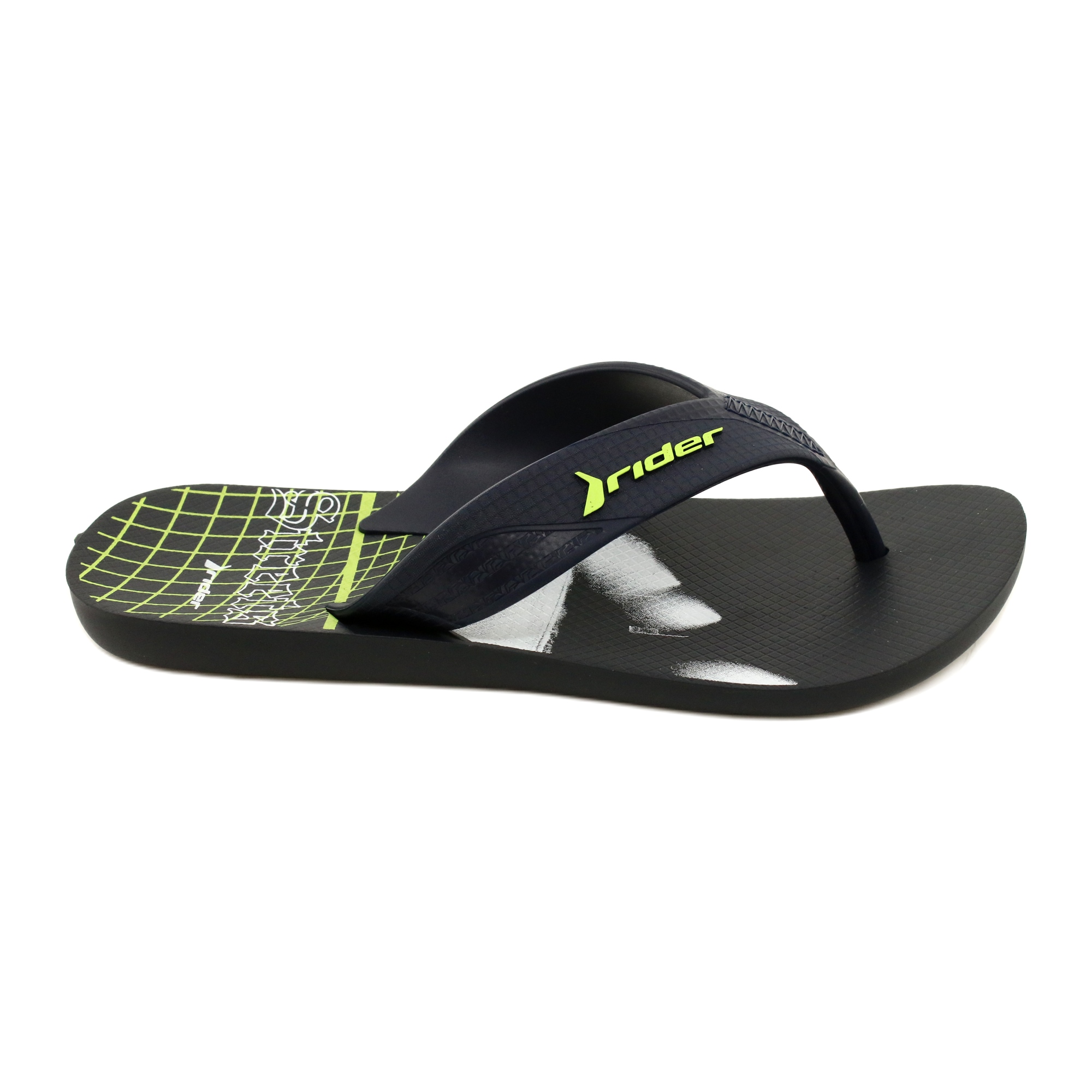Rider des tongs masculins 11804 AE205 - Black / Navy Blue avec logo vert
