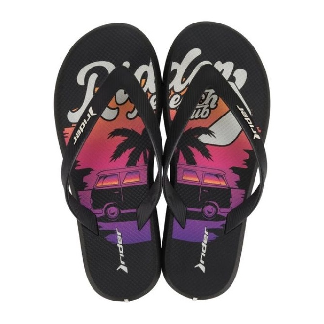 Rider R1 Energy VII AD 83633 AY964 Les flops -flops sont caractérisés par un intérieur en caoutchouc qui garantit le confort de porter même pendant longtemps. Leur couleur noire universelle avec des accents multi-colorants se marie parfaitement avec chaque stylisation d'été, des shorts décontractés aux maillots de bain colorés.