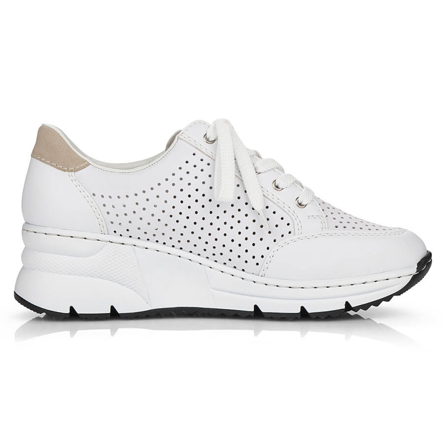 Détails: Rieker N6304-80 chaussures compensées en cuir blanc