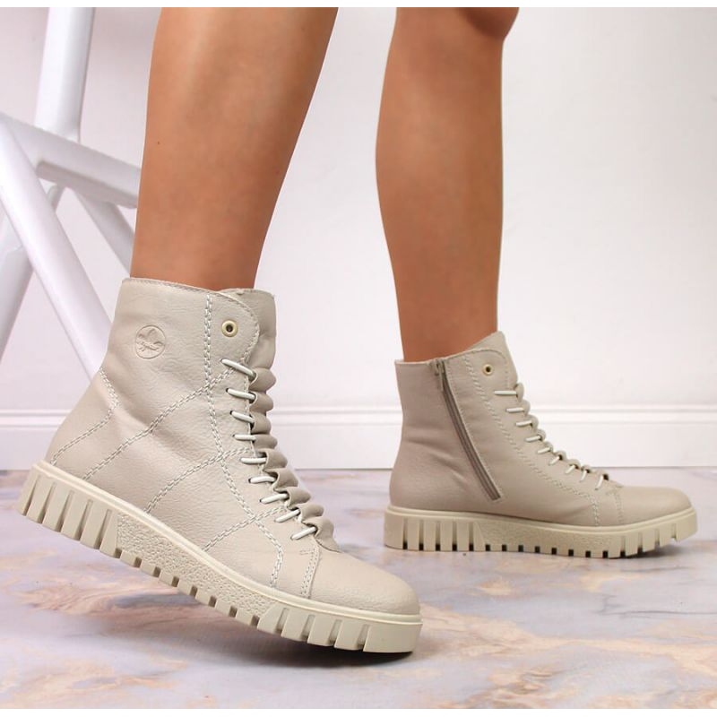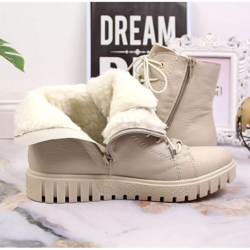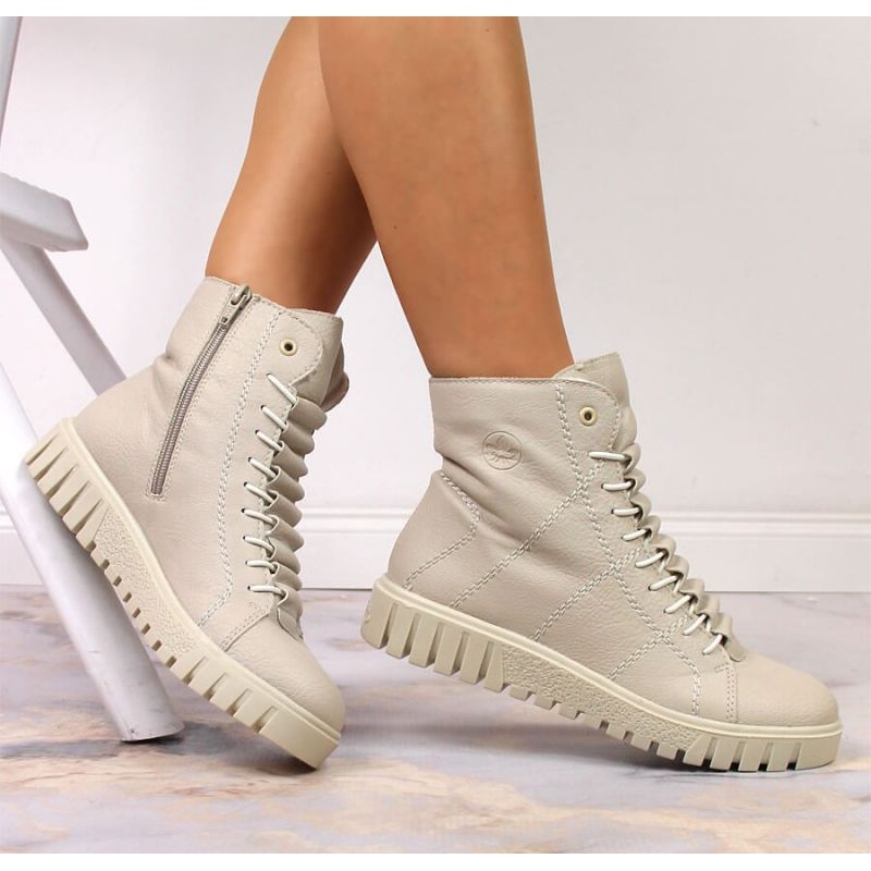 Des bottes Rieker élégantes et pratiques dans RKR279C sont une proposition pour les femmes qui recherchent des chaussures d'hiver chaudes sans abandonner le style. Universal Beige va parfaitement avec des stylisations décontractées et plus élégantes. Le modèle combine le confort de l'isolation avec une plate-forme stable à la mode.