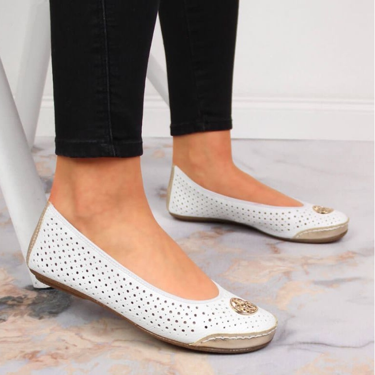 Détails: Rieker W RKR516 ballerines ajourées blanc blanche d'or