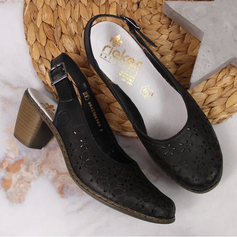Le modèle RKR531 se caractérise par une coupe classique avec une finition ajourée, qui ajoute légèreté et légèreté, parfaite pour les journées chaudes. Le talon haut de 6,5 cm en forme de poteau garantit la stabilité et affine en même temps la silhouette. Les sandales sont fermées par une boucle, ce qui permet un ajustement facile au pied.