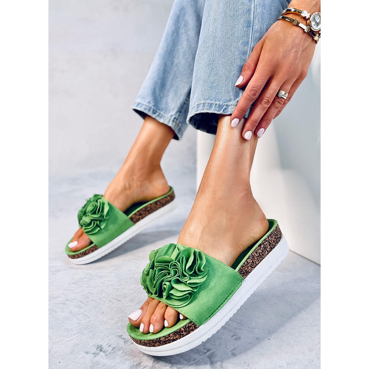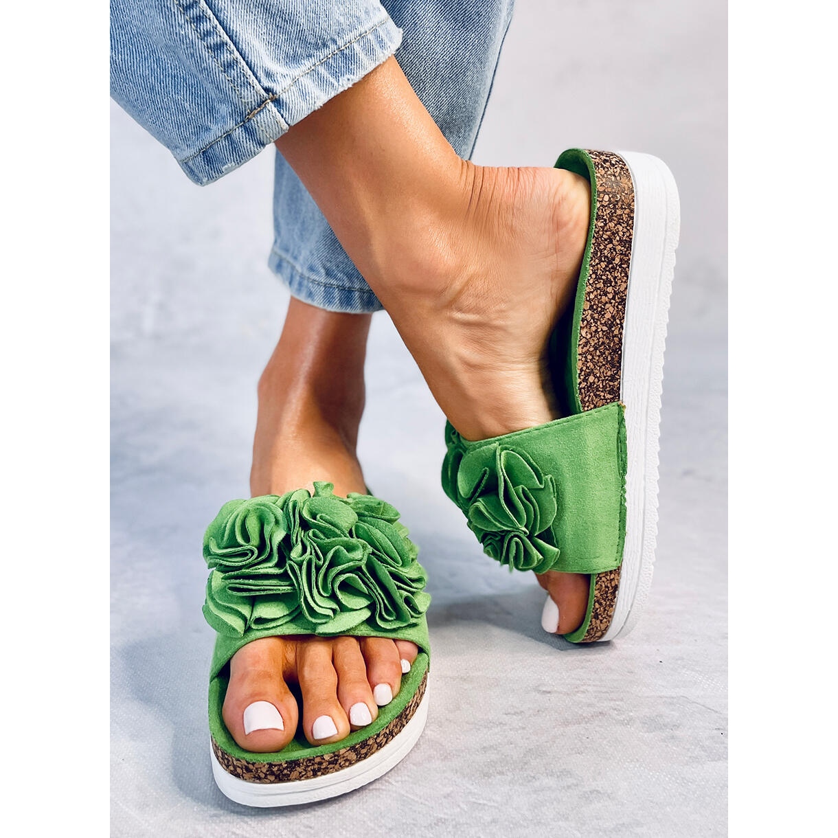 Détails: BM Rizzo Pantoufles à fleurs vertes