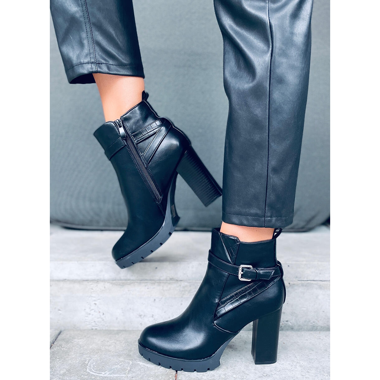 Découvrez l'élégance et le confort avec les bottines à talons hauts Roxi Black. Ces bottines pour femme en pleine fleur allient design moderne et style classique, ce qui en fait le choix parfait pour toutes les occasions. Fabriqués en cuir écologique de haute qualité, ils ravissent non seulement par leur esthétique, mais aussi par leur confort de port grâce à une fourrure délicate qui réchauffe l'intérieur.