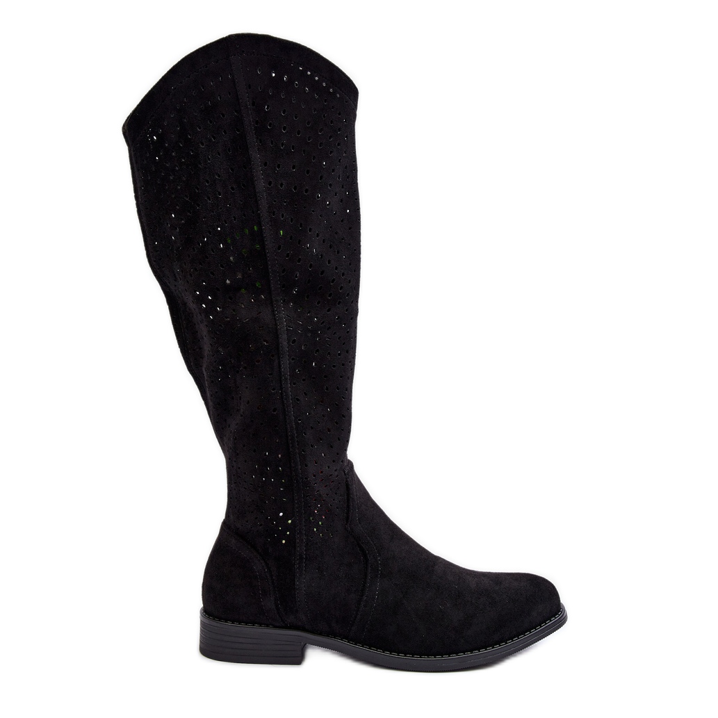 S.barski HY66-150 Bottes ajourées à talons plats, noir