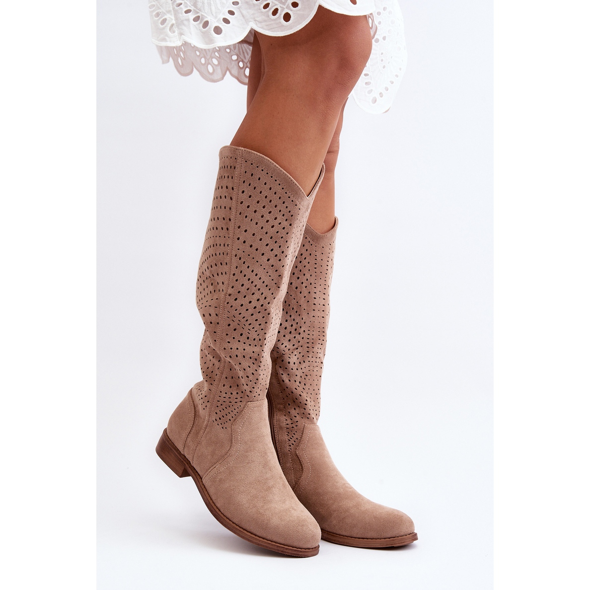 **Bottes à talons plats ajourées beiges S.barski HY66-150 – Vous devez les avoir !**