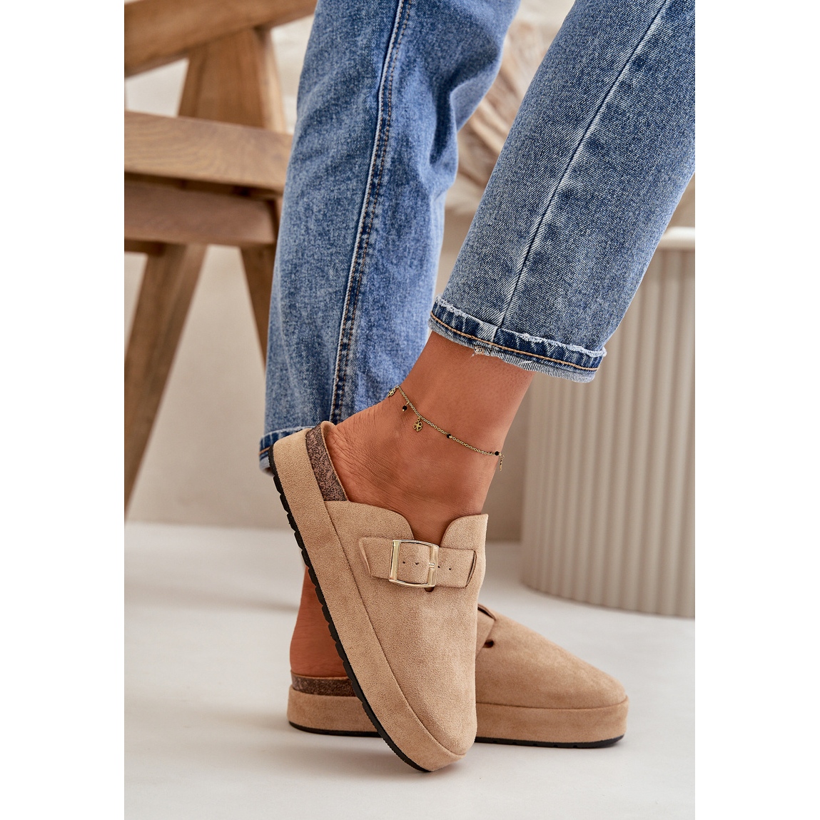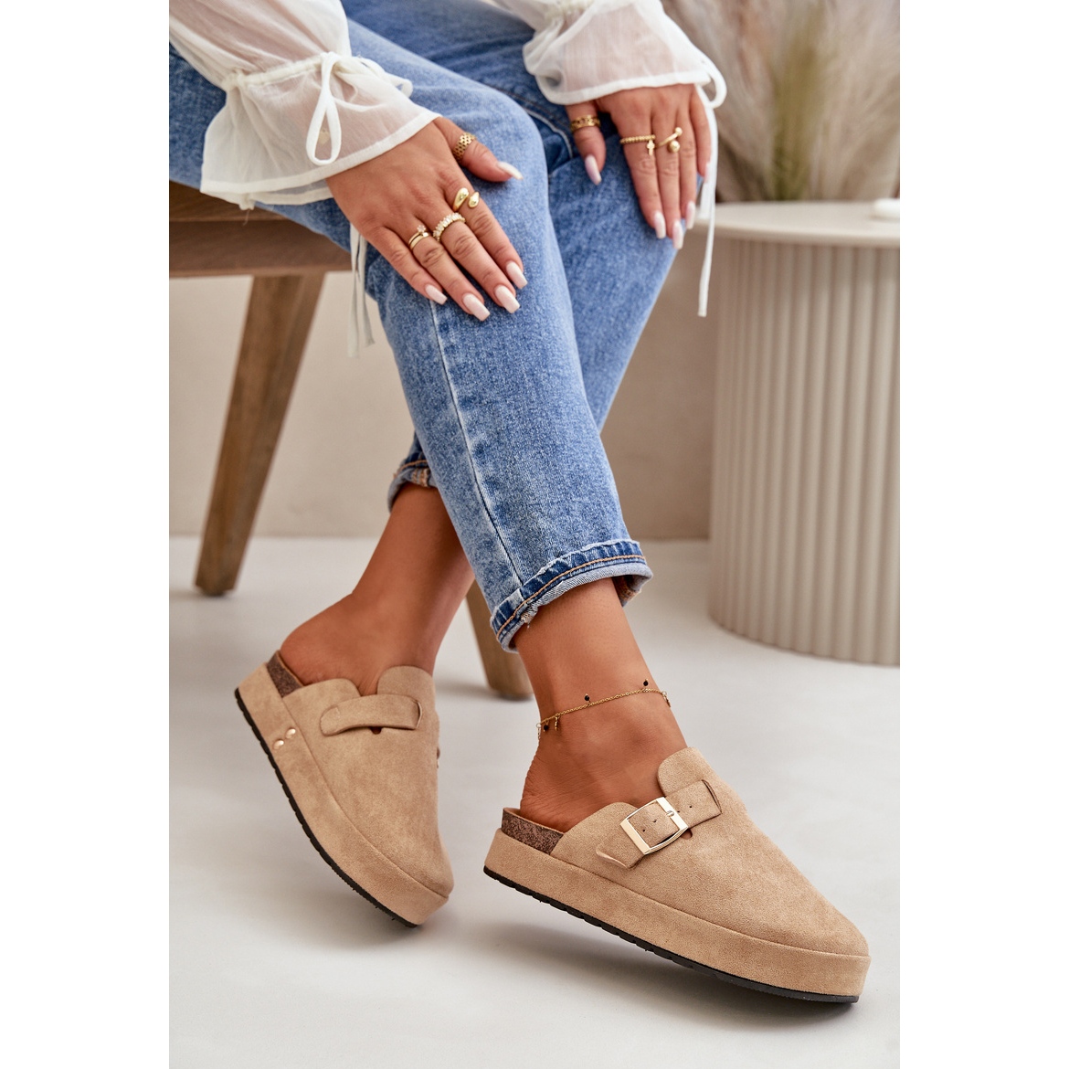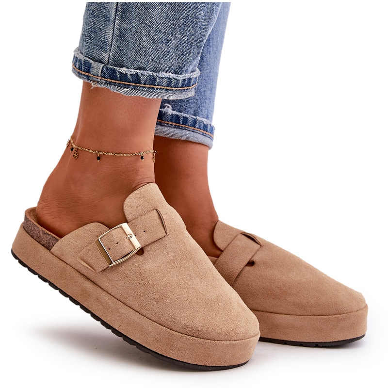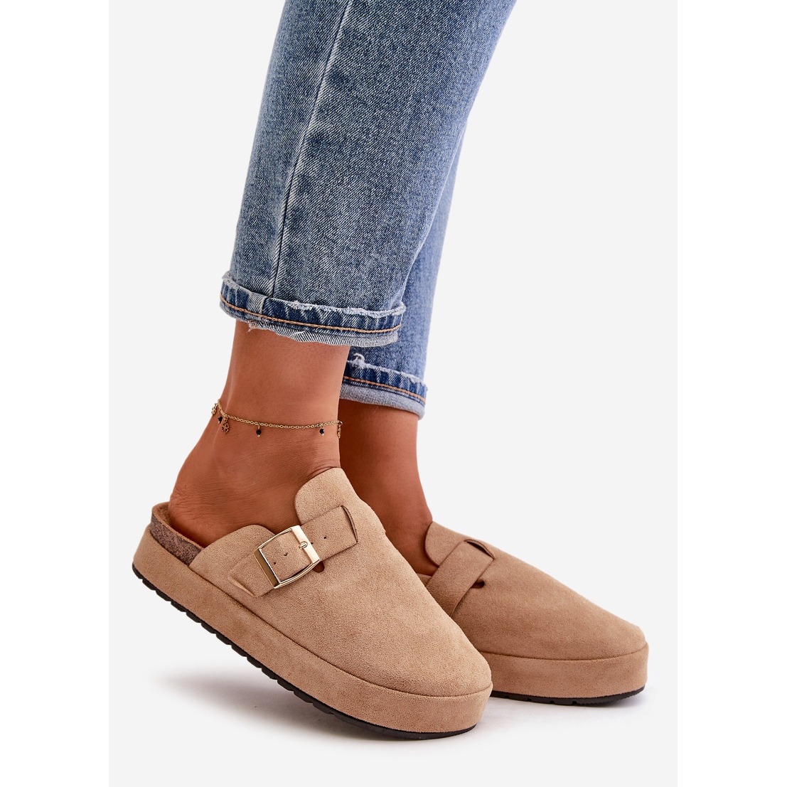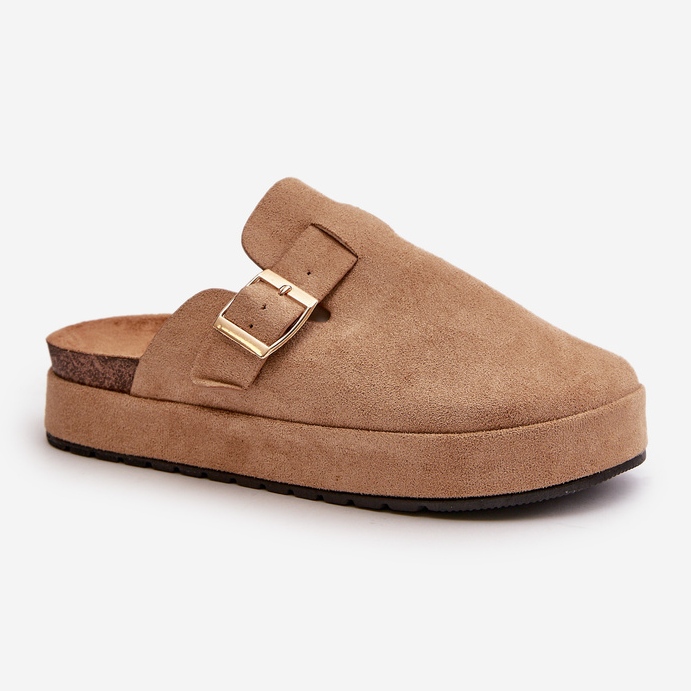 Détails: Sabots à Plateforme pour Femme avec Boucle Dorée, Beige Foncé Terilaina