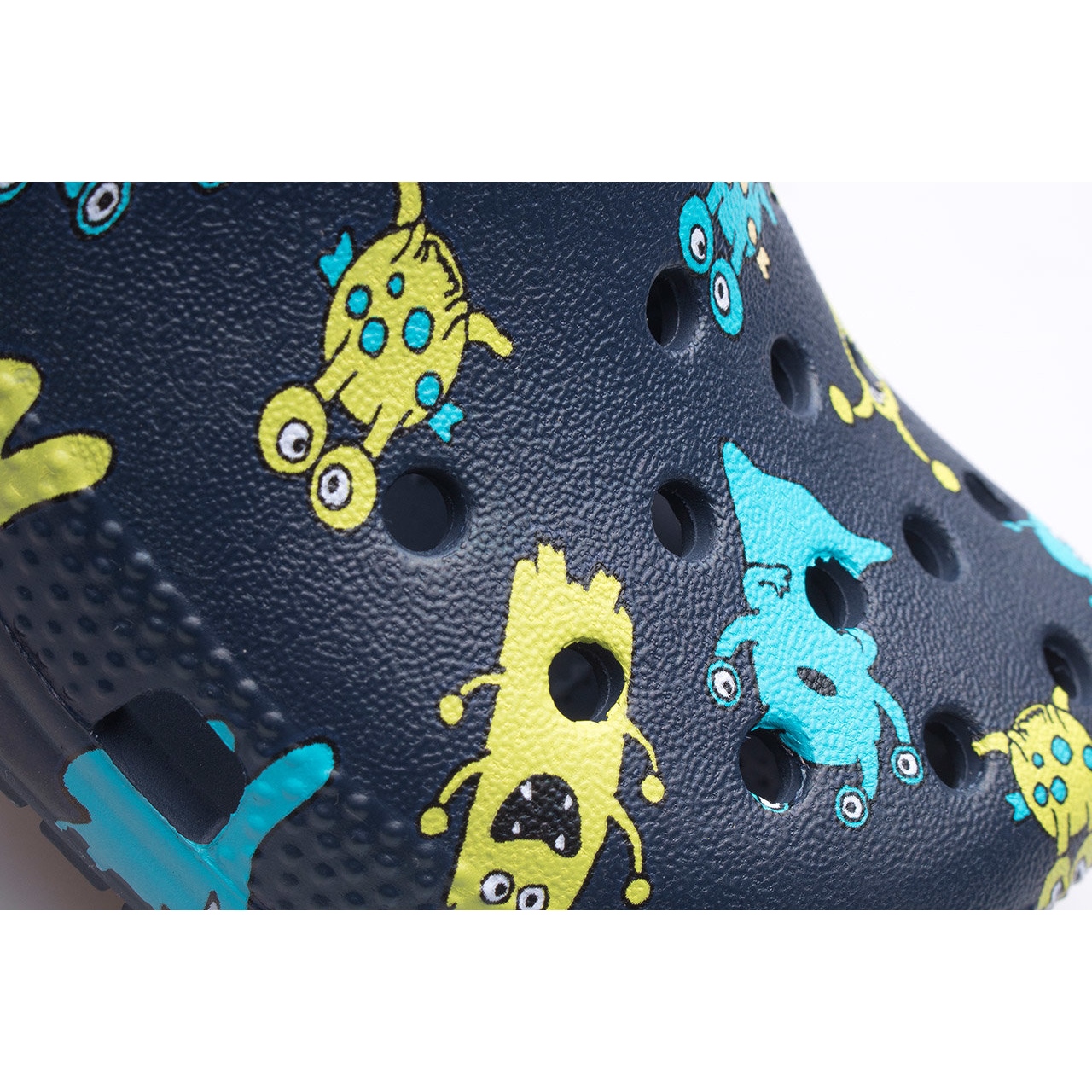 Crocs Classic Monster Print Clog T Navy est un choix parfait pour un usage quotidien, pour s'amuser et pour les accidents à la piscine. Investissez dans le confort de votre enfant avec des tongs fiables de Crocs !