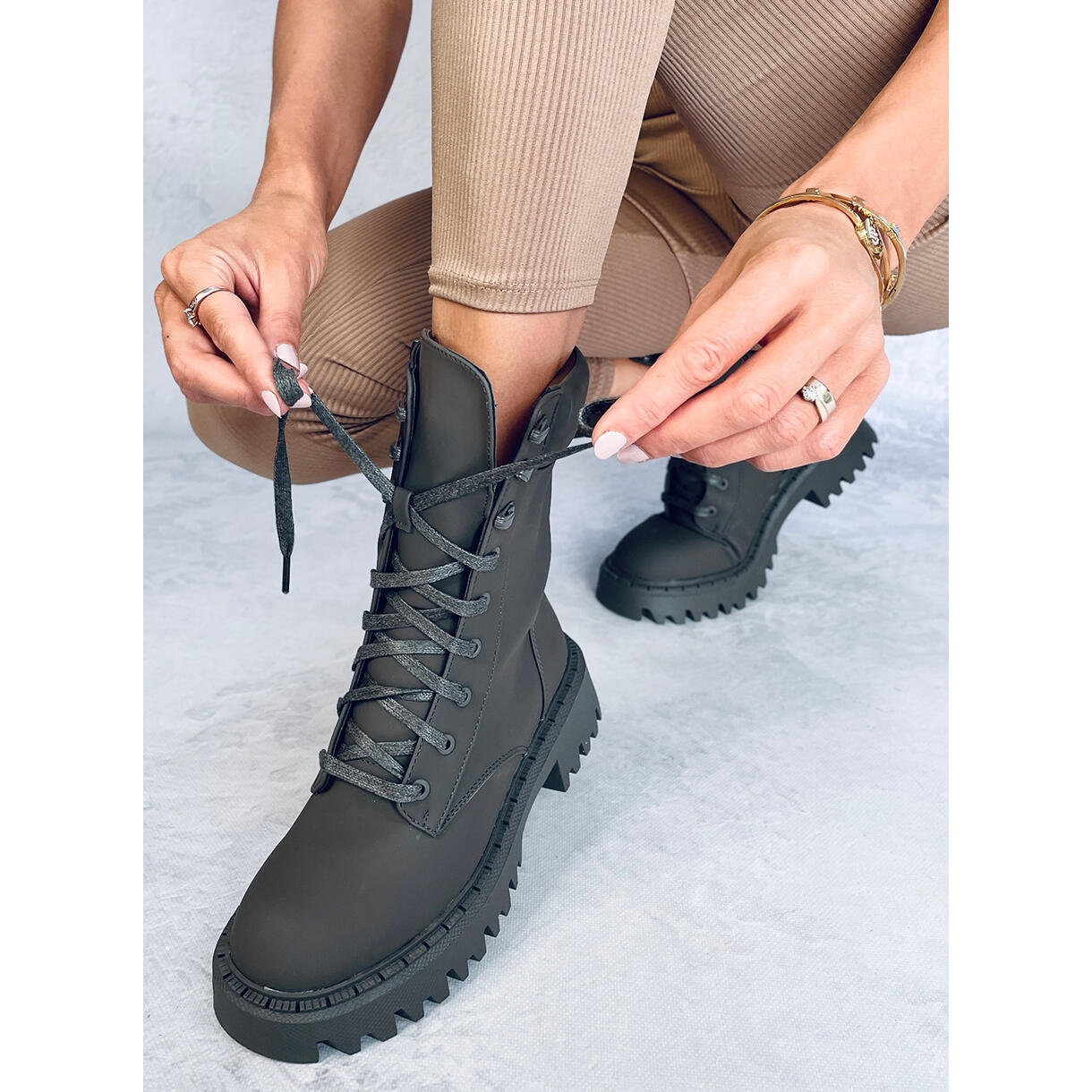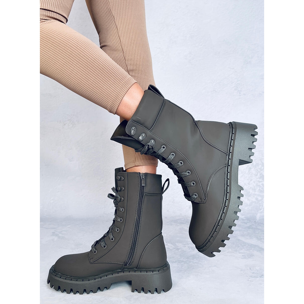 Le produit en question est des chaussures à lacets kaki de la marque Inna, faisant partie de la collection KeeShoes. Ce sont des bottes pour femmes élégantes de style militaire, en cuir écologique avec une finition mate. Elles présentent un style travailleur classique avec une protection, avec la possibilité de laçage, qui permet un ajustement parfait à la largeur du pied. Une commodité supplémentaire est la fermeture éclair sur le côté de la tige.