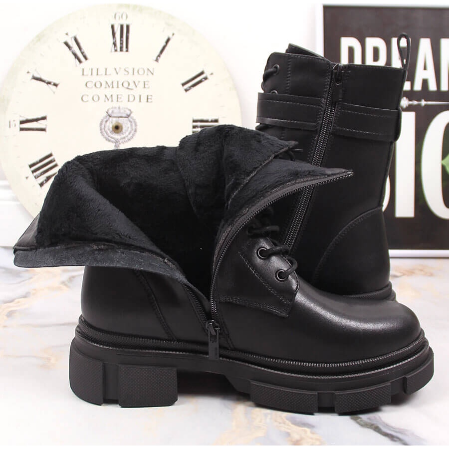 Fabriqués en cuir naturel, les ouvriers se distinguent par leur construction solide et leur doublure en fourrure isolée, ce qui les rend parfaits même les jours les plus froids. La hauteur supérieure est d'environ 18 cm et l'épaisseur de la semelle est de 3 cm, ce qui assure la stabilité au porté. Grâce au talon bloc de 5 cm de haut, vos pieds bénéficient d'un soutien supplémentaire et vous gagnez en même temps quelques centimètres de hauteur, ce qui met en valeur votre silhouette.