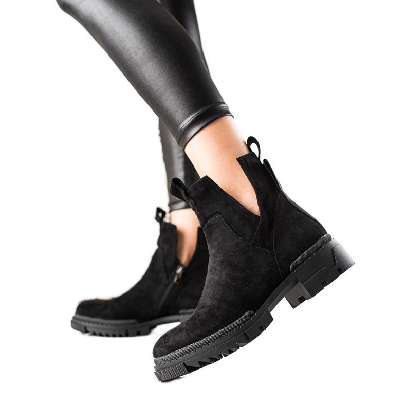 Découvrez un confort et une élégance exceptionnels grâce aux bottes de travail en daim noir à découpe du fabricant W. Potocki. Ces bottines élégantes pour femmes sont une proposition parfaite au quotidien qui s'intégrera avec succès à votre style décontracté, parfaites pour un style urbain et quotidien.