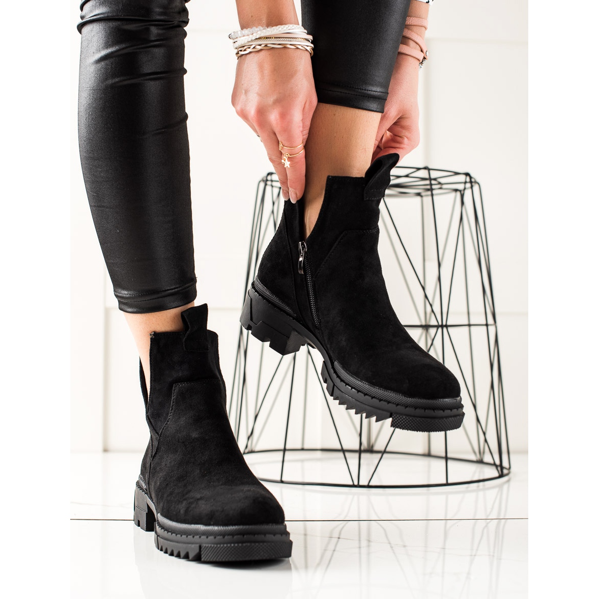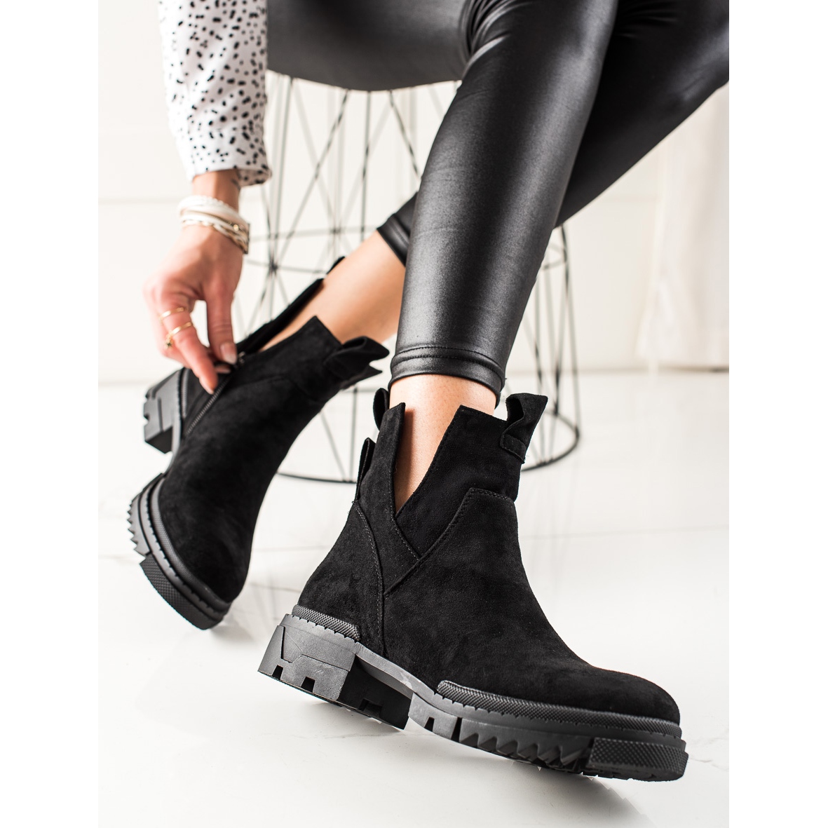 Les ouvriers en daim noir de W. Potocki sont non seulement fonctionnels, mais aussi esthétiques. Fabriqués en cuir suédé écologique, ils constituent un excellent choix pour ceux qui se soucient de l'environnement sans sacrifier l'expression de la mode. Laissez-vous emporter par le style et le confort en choisissant des bottines de marque qui seront le complément parfait à votre garde-robe pour les journées spéciales d'automne et d'hiver.