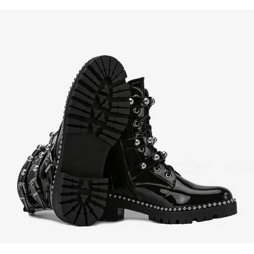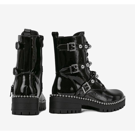 Découvrez la beauté du style hivernal avec les bottes Esther - des bottes de travail uniques qui allient design tendance et confort de port. Ces bottines plates noires, confectionnées en cuir verni écologique, sont un choix idéal pour les femmes recherchant à la fois l'esthétique et la fonctionnalité.