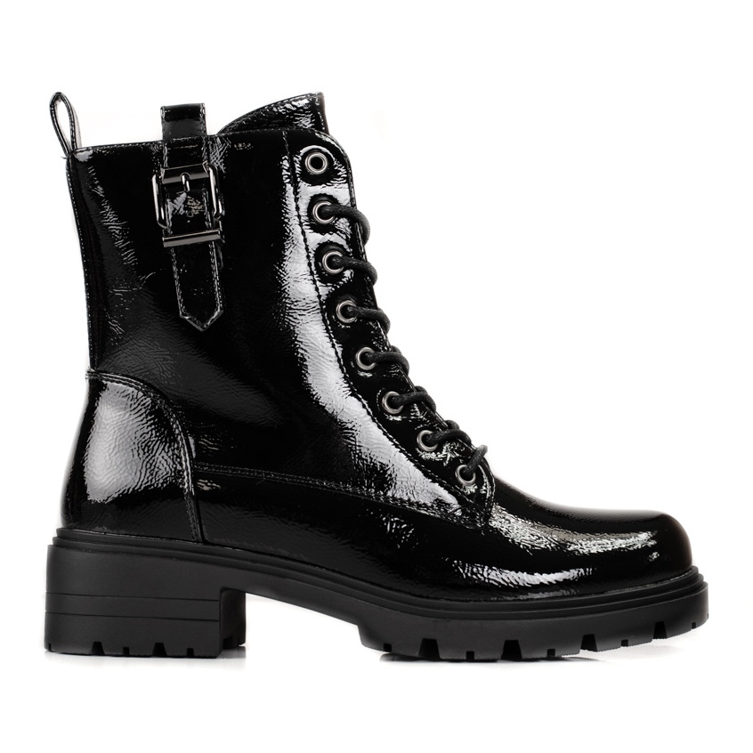 Fabriquées en similicuir verni, ces bottines sont élégantes et modernes. Le bout rond, la fermeture éclair et le laçage élégants ajoutent du caractère, et la semelle synthétique avec bande de roulement offre une excellente adhérence sur diverses surfaces.