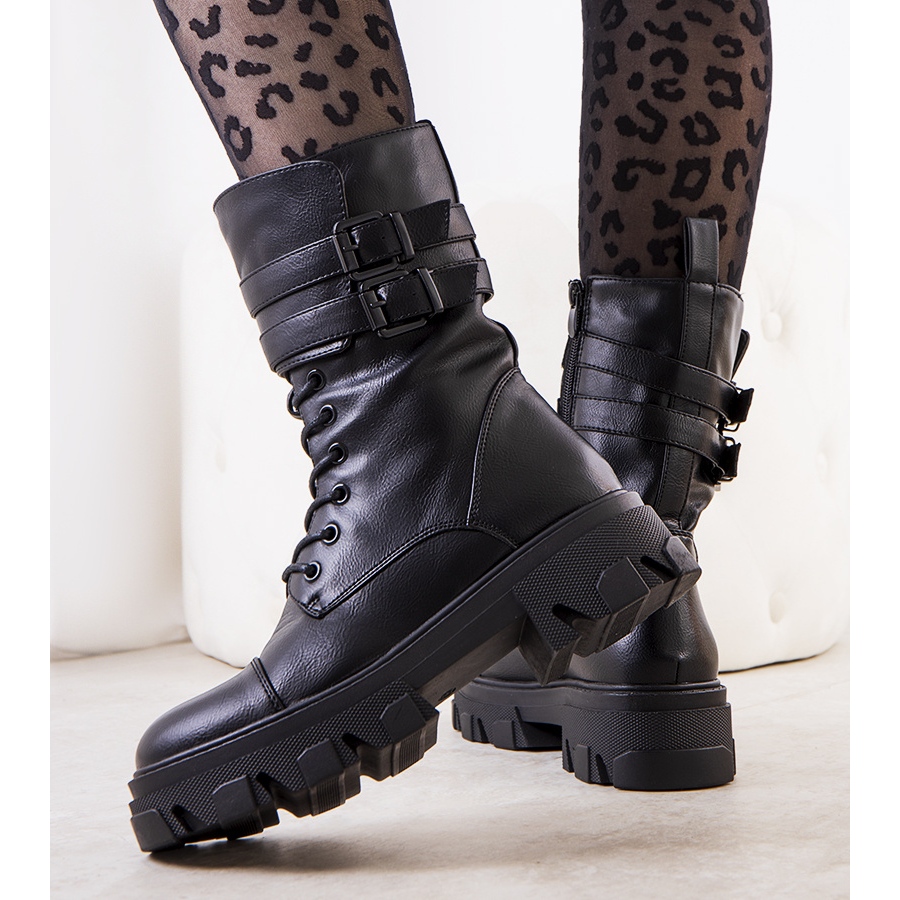 Fabriqués en cuir écologique de haute qualité, les ouvriers assurent à la fois durabilité et respect de l'environnement. Grâce à la matière utilisée, ils sont faciles d'entretien, tout en donnant un aspect similaire au cuir naturel. Le modèle propose une semelle trappeur solide qui garantit stabilité et confort lors de la marche et allonge efficacement la silhouette.